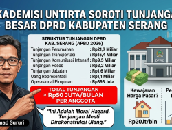 Berita UtamaadminApril 9, 2026 Struktur Tunjangan DPRD Kabupaten Serang di APBD 2026 Disorot Akademisi Untirta : Tunjangan Per bulan Rp50 Juta Itu Moral Hazard! …